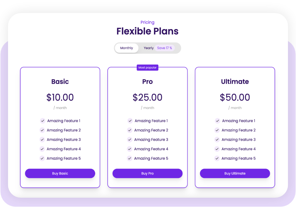 Easily offer your customers subscription-based & one-time purchase products with SaaSykit. All the webhook handling, subscription management, and billing are already set up for you in a beautiful and easy-to-use admin panel.